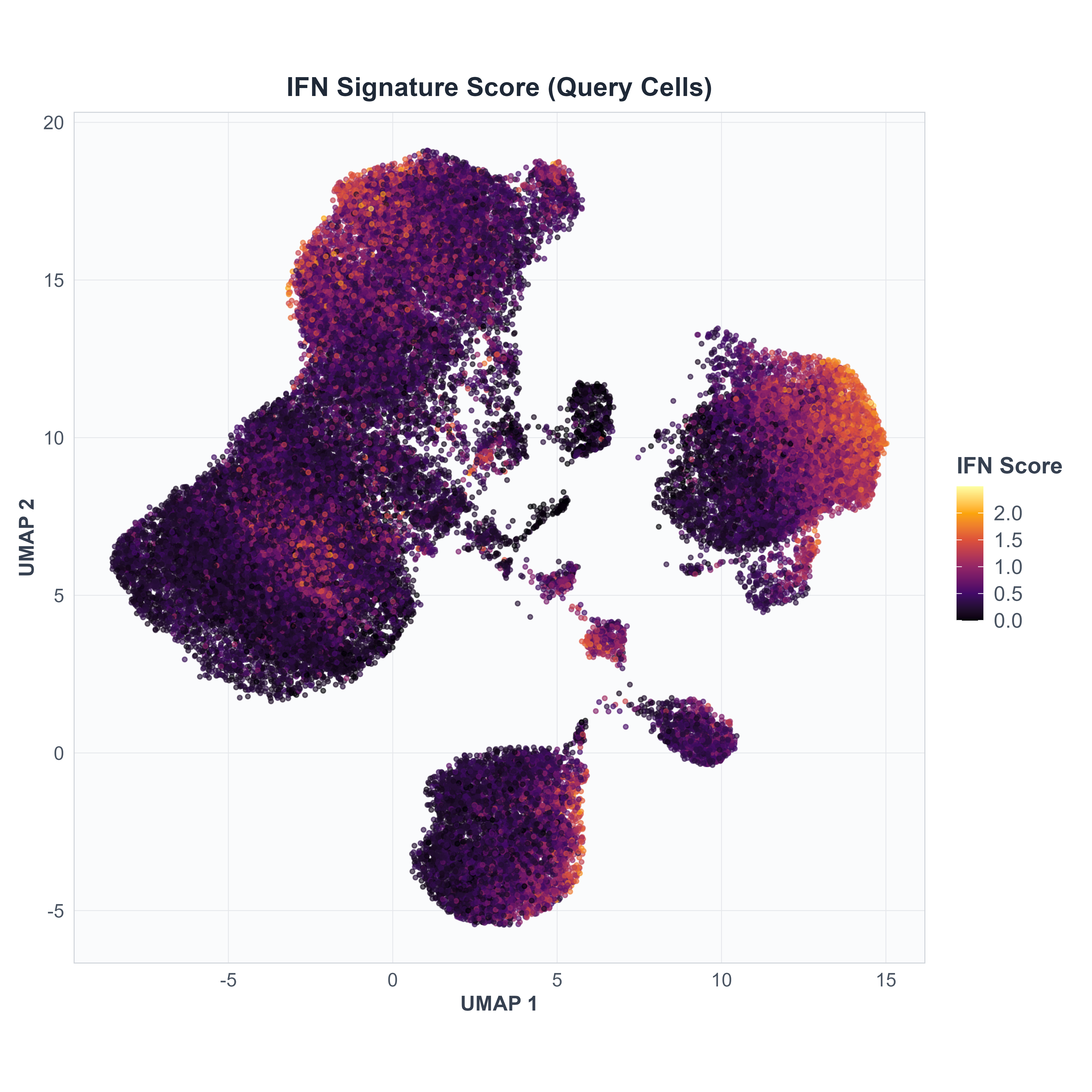 - Projects all cells into UMAP space (computed from scVI latent space)