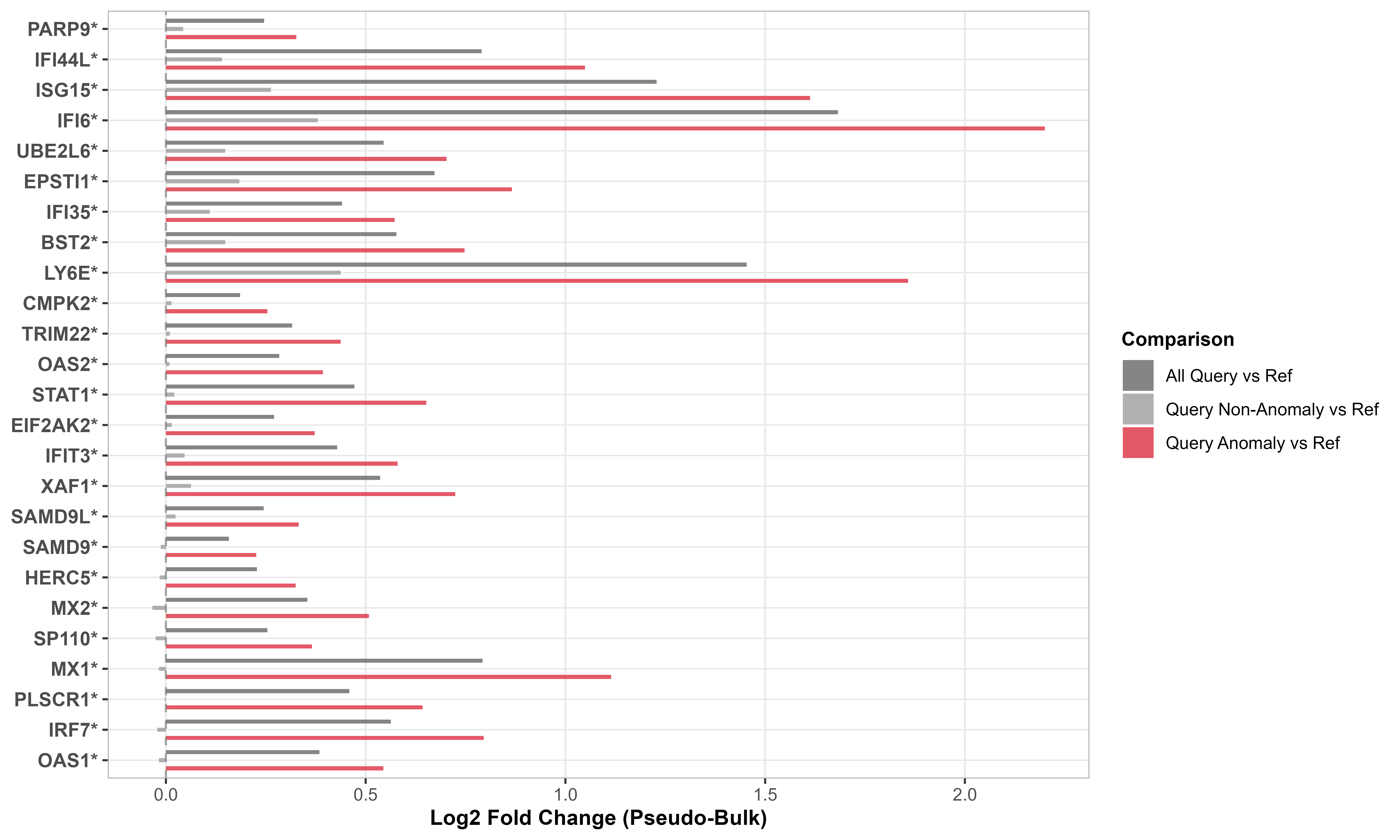 - Characterize annotation anomalies — Determine which genes drive differences between query and reference, and whether these expression changes point to biological or technical factors